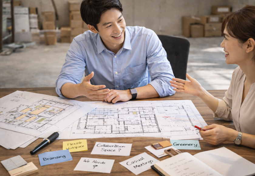 さらに、賃貸オフィスの場合はビル管理会社との調整や原状回復条件など、書面以外の運用面も影響します。内装工事を検討する際は、図面を前提としつつも、現場確認や打ち合わせを重ねることで補完していくことが大切です。図面に描ききれない部分をどう共有するかが、判断の質を左右します。